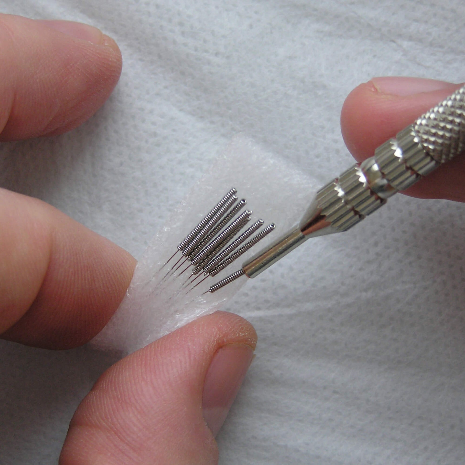 De prikdiepte is zeer fijn af te stellen. Een borgmoer fixeert de instelling. Geschikt voor handacupunctuurnaalden (7 tot 8 mm lang) en voor andere Koreaanse naalden met een naaldlengte tot 15 mm. De maximale penetratiediepte voor handnaalden met een lengte van 8 mm is 4 mm.